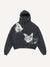 Distressed Washed Butterfly Print Slant Pockets Hoodie