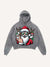 Distressed Washed Christmas Santa Claus&Graphic&Letter Print Slant Pockets Hoodie