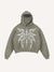 Distressed Washed Eye&Wing Print Slant Pockets Hoodie