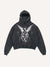 Distressed Washed Figure&Wing Print Slant Pockets Hoodie