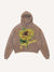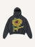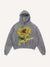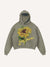 Distressed Washed Floral&Letter Print Slant Pockets Hoodie