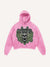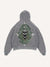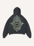 Distressed Washed Skull Faux Decal Print Slant Pockets Hoodie