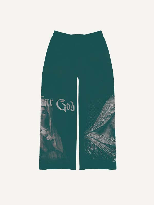 Mary&Pray&Cross&Letter Faux Rhinestones Print Elastic Waist PantsMary&Pray&Cross&Letter Faux Rhinestones Print Elastic Waist Pants