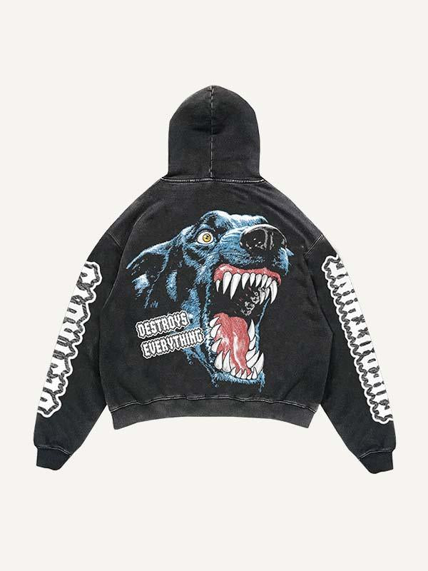 Animal&Letter Print Slant Pockets HoodieAnimal&Letter Print Slant Pockets Hoodie